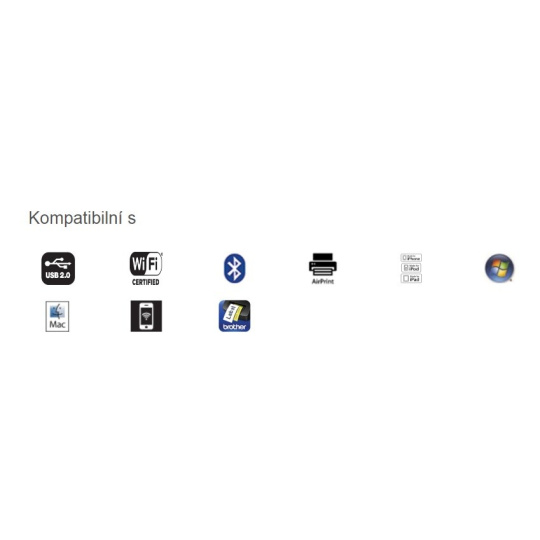 AirPrint ano Bluetooth Ver 2.1 EDR MFi ano Profily bluetooth SPP/OPP/BIP/HCRP USB rozhraní Ver 2.0 (plná rychlost) Wi-Fi Direct Ano Rozhraní drátové sítě 10/100 BASE-TX Rozhraní bezdrátové sítě Wi-Fi IEEE 802.11 b/g/n