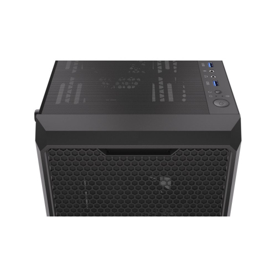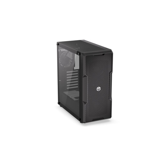 Skříň formátu Middle Tower s průhlednou bočnicí z tvrzeného skla nabízí dvě 2,5" pozice pro SSD disky a dvě 3,5" pozice pro pevné disky. Na horní části se nachází dva USB 3.0 porty, sluchátkový výstup a audio vstup pro mikrofon. Vybavena je čtyřmi 120 mm ventilátory, které spolu s perforovaným čelním panelem zajišťují dostatečné proudění vzduchu. Ve skříni je dostatek prostoru pro chladič CPU do výšky až 162 mm a grafickou kartu o délce až 370 mm. Dodávána je bez zdroje. Součástí je také sada prachových filtrů.
