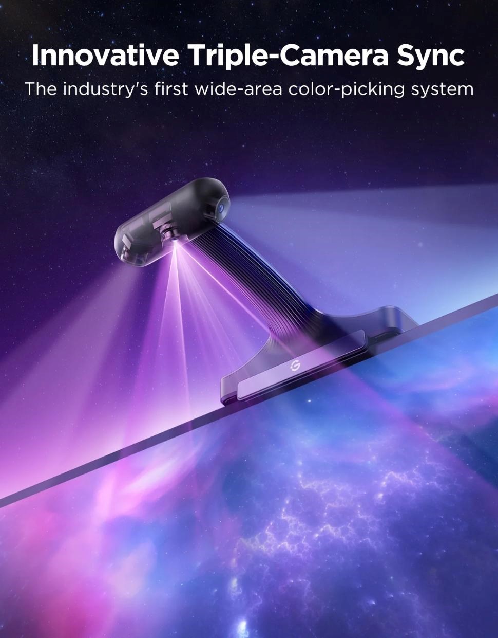 První na světě s trojitou HDR kamerou, Govee TV Backlight 3 Pro posouvá přesnost snímání na novou úroveň. Kamery sledují obraz z více úhlů, čímž dosahují detailnějšího a realističtějšího přenosu barev. Každý kout obrazovky je tak perfektně sladěný s okolním osvětlením.