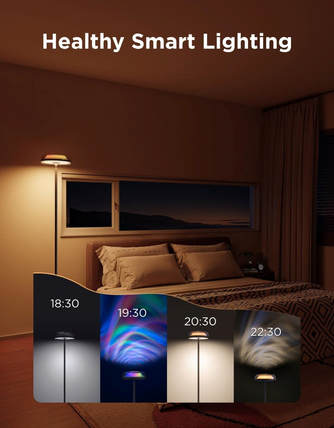 Technologie RGBIC v kombinaci s teplými a studenými LED zajišťuje neomezené možnosti nastavení barev i odstínů bílé. Můžete si vybrat jemné teplé světlo pro relaxaci, jasné studené pro práci nebo kombinaci barevných efektů, která dodá prostoru originalitu. Díky vysokému světelnému výkonu dokáže lampa efektivně osvětlit celou místnost, přesto působí decentně a nerušivě. Ovládání probíhá jednoduše prostřednictvím aplikace Govee Home, kde je připraveno více než 80 scén, hudební synchronizace nebo speciální režim Auto-Run pro automatickou změnu barev během dne. Lampu můžete navíc propojit s hlasovými asistenty Alexa a Google Assistant pro ještě pohodlnější používání.