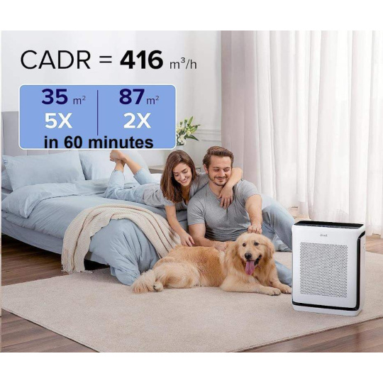 Levoit Vital 200S PRO disponuje výkonem až 416 m3/h CAD a vyčistí dvakrát za hodinu místnost o velikosti až 87 m2 a až pět krát za hodinu místnost o velikosti 35 m2.