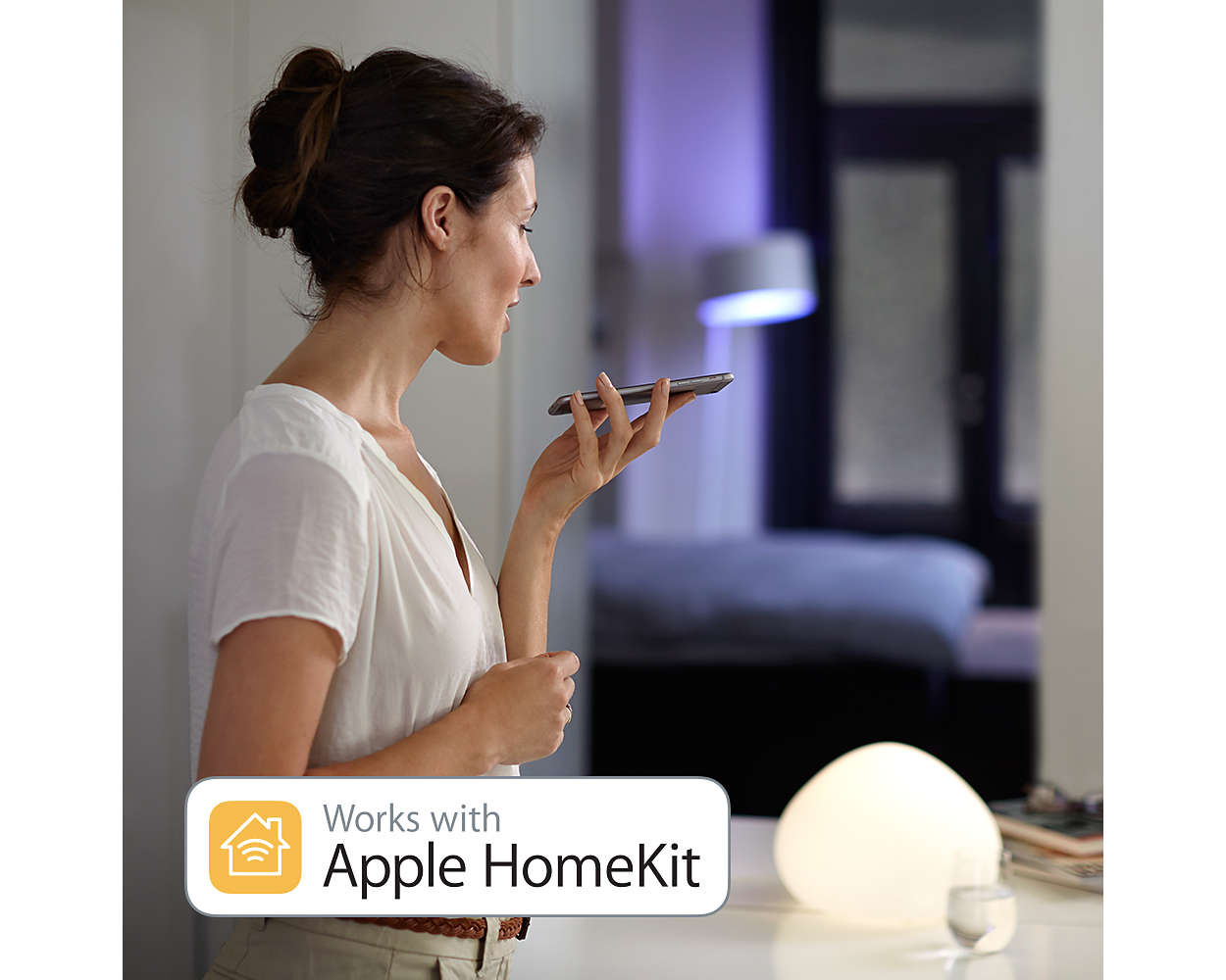 Systém Philips Hue je kompatibilní se systémy Amazon Alexa, Apple HomeKit a Google Home (funguje na platformě Google Assistant). Osvětlení lze díky tomu ovládat i hlasem. Můžete je zapínat i vypínat, případně ladit dokonalou atmosféru úpravou jasnosti. Vybírat lze dokonce i z přednastavených scén. Můžete také měnit barvy a ještě mnohem více. Aniž byste hnuli prstem.