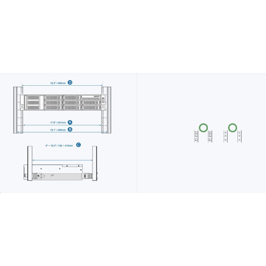 Sady kolejnic QNAP Rail Kits pomáhají při instalaci QNAP NAS do racku. Posuvné kolejnice umožňují zasunutí QNAP NAS dovnitř a vysunutí ven pro snadnou údržbu a správu. Modely QNAP NAS určené do racku vyhovují standardům rackové montáže ANSI/EIA-RS-310-D. Než nakoupíte serverový rack, nejprve se prosím ujistěte, zda tento serverové rack odpovídá příslušným specifikacím.