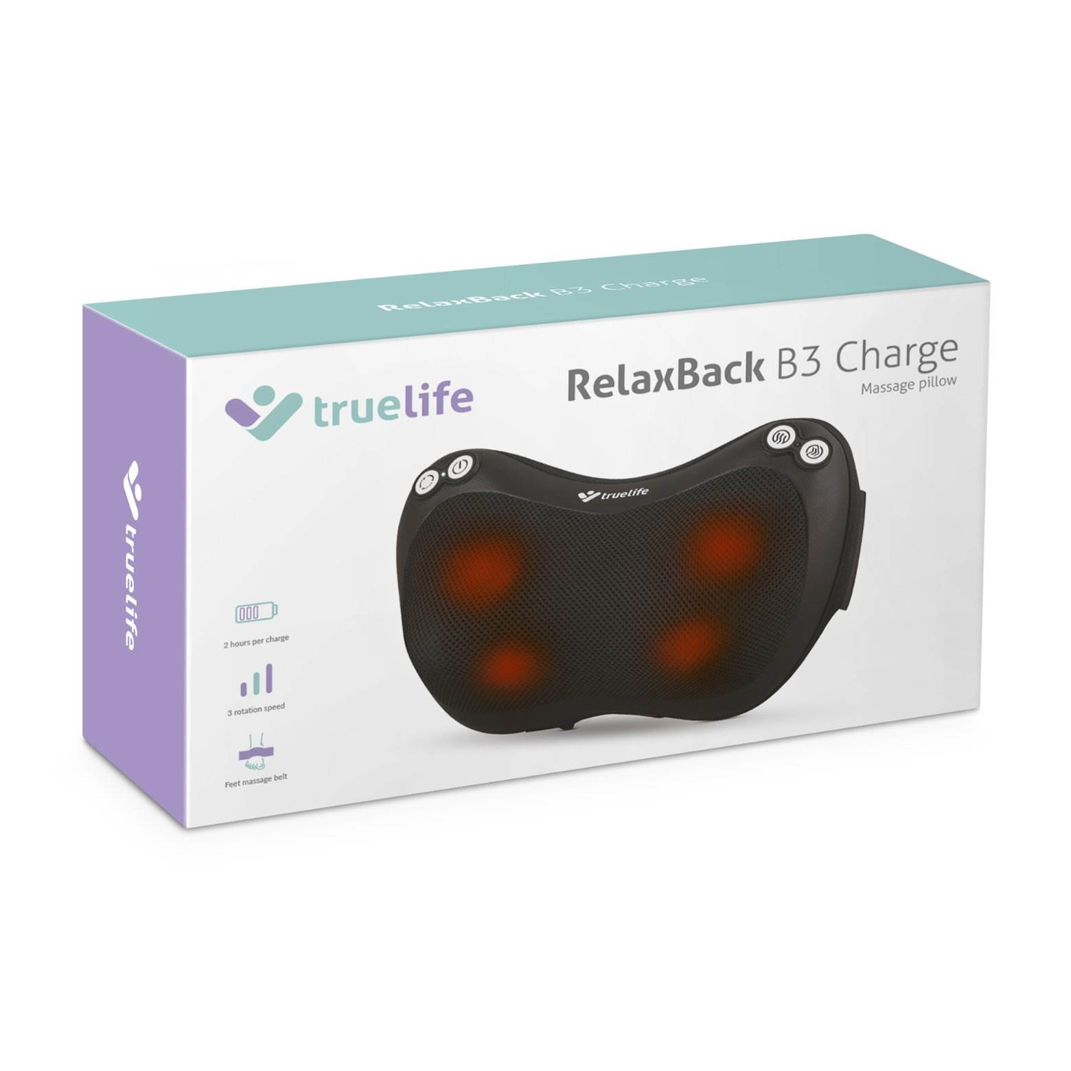 TrueLife RelaxBack B3 Charge – masážní polštář s dobíjecí baterií