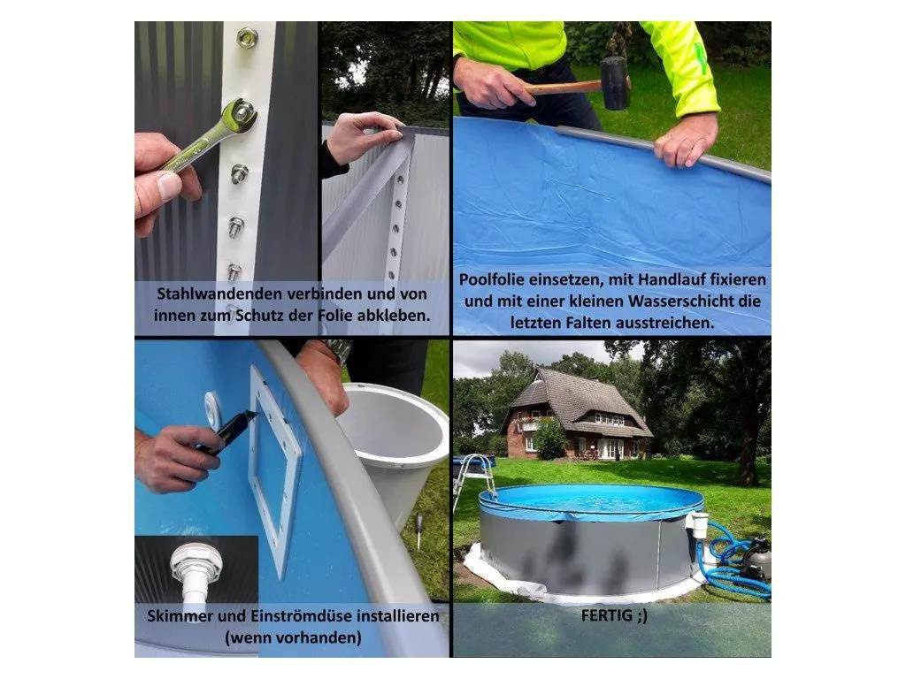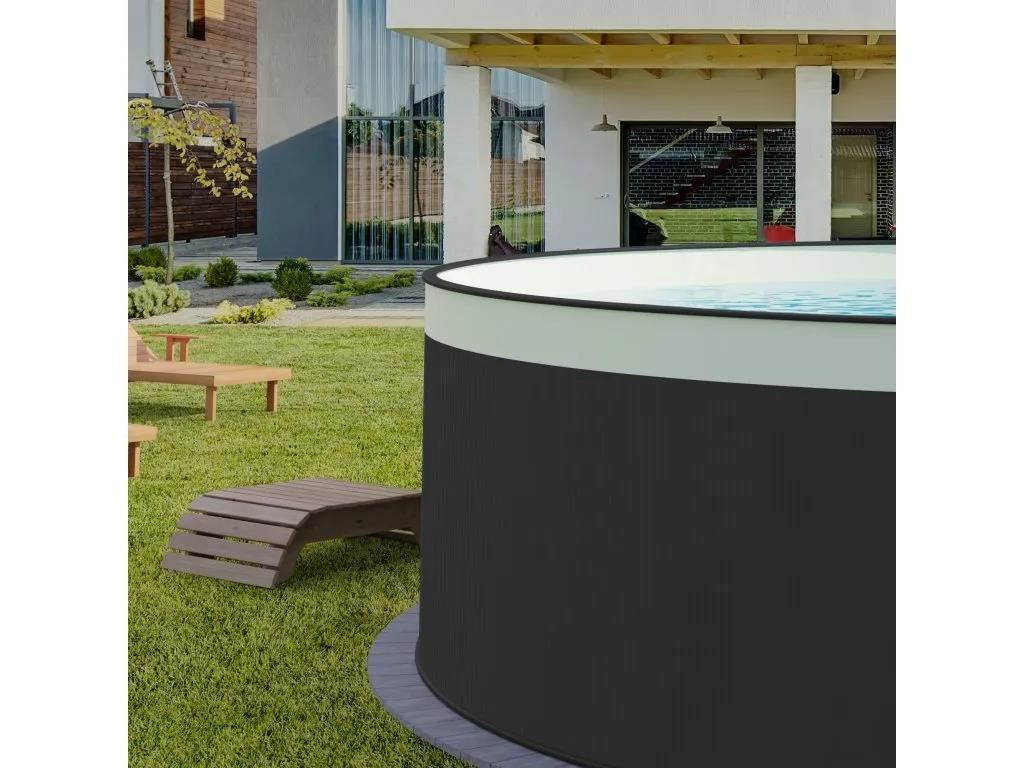 Nadzemní bazény Planet Pool s ocelovou stěnou jsou určeny pro celoroční použití. Odpadá tak potřeba bazén demontovat na podzim a znovu instalovat na jaře jako u sezónních bazénů s nafukovacím límcem či rámovou konstrukcí. Díky žárově pozinkované a nátěrem ošetřené ocelové stěně a mrazuvzdorné fólii je bazén připraven na všechny rozmary přírody. Tento bazén je velmi stabilní, pevný s dlouhou životností. Moderní ANTRACITOVÝ nátěr stěny bazénu + PÍSKOVÁ PVC závěsná folie. Bazén je vhodný pro instalaci na rovném podkladu s dostatečným odstupem od potenciálního spadu nečistot ze stromů a střech. UV stabilizace PVC folie zajišťuje je barevnou stálost a životnost. Tento bazén přestavuje osvědčenou koncepci bazénu a pozitivní historickou zkušenost. Bazén se instaluje pomocí spodních a horních lišt, do kterých se zasazuje ocelová stěna. Oba kraje stěny se propojí pomocí vnitřních a vnějších lišt a šroubů. Mrazuvzdorná folie se pomocí zalomení o horní část ocelové stěny zavěsí a vytvaruje do bazénu dle vizuálních požadavků. Folie je flexibilní a na míru vyrobena pro tento typ bazénu (není třeba žádných úprav). Pro montáž krok za krokem následujte pokyny v montážním návodu. Parametry: Tvar bazénu: kulatý tvar Rozměry bazénu: 350 x 90 cm Ocelová stěna: 0,3 mm UV stabilizovaná PVC fólie, tloušťka 0,2 mm, barva PÍSKOVÁ Barva bazénu: ANTRACITOVÁ Děrování pro standardní vestavěný skimmer a zpětnou trysku k dispozici Horní a podlahová lišta z plastu Bazén odpovídá evropské normě pro bazény EN 16562-2.