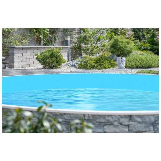 Bazénová fólie Blue pro bazény s plechovou stěnou o průměru 3,6 m a hloubce až 1,2 m. Fólie je vhodná jak pro nové bazény, tak i na výměnu do již postavených bazénů. Jedná se o kvalitní fólii odolnou vůči oděru a bazénové chemii.