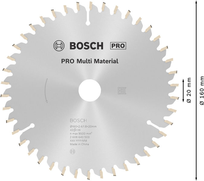 Bosch pilový kotouč PRO Multi Material pro okružní pilu, 160 × 2,4 × 20 mm