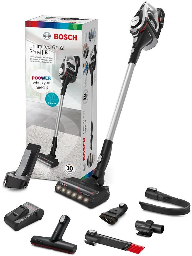 Bosch Unlimited Series 8 tyčový vysavač, akumulátorový, 63 dB, bezsáčkový, černá