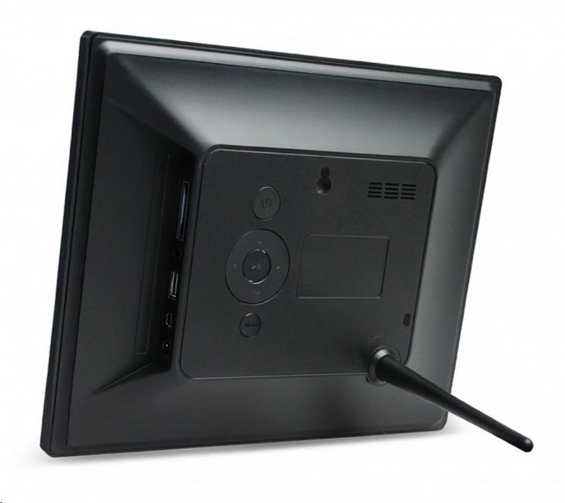 Digitální fotorámeček s úhlopříčkou 10", IPS, vysoké rozlišení 1024x768px, 4:3, prohlížení obrázků ve formátu JPEG, poslech hudby MP3/WMA a přehrávání videa MPEG1/2/4, AVI, XVID, multislot SDHC/MS a USB2 flash, HDMI in, Audio out, Auto Start, OSD menu, dálkový ovladač, mini USB2, černý. Funkce: SlideShow (prezentace), náhledy, zoom a otáčení obrázků, budík, hodiny, kalendář. Rozměr: 255x207x23 mm, hmotnost 700 g. Možnost uchycení na zeď nebo našrobování stojánku. Energetická kategorie B. Součástí dodávky síťový zdroj AC/DC 5V/2A, dálkové ovládání, mini USB/USB kabel..