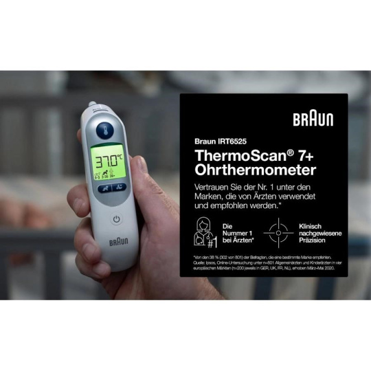 Braun ThermoScan 7 plus IRT6525WE bezkontaktní teploměr, ušní, displej, noční režim, paměť pro 9 měření