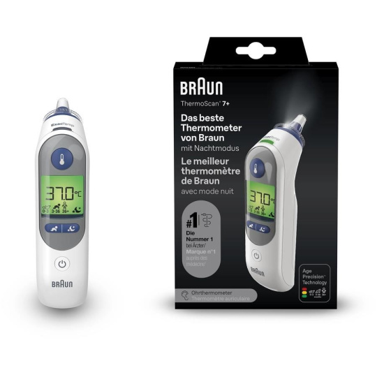 Braun ThermoScan 7+ je ušní teploměr s indikátorem horečky v závislosti na věku.