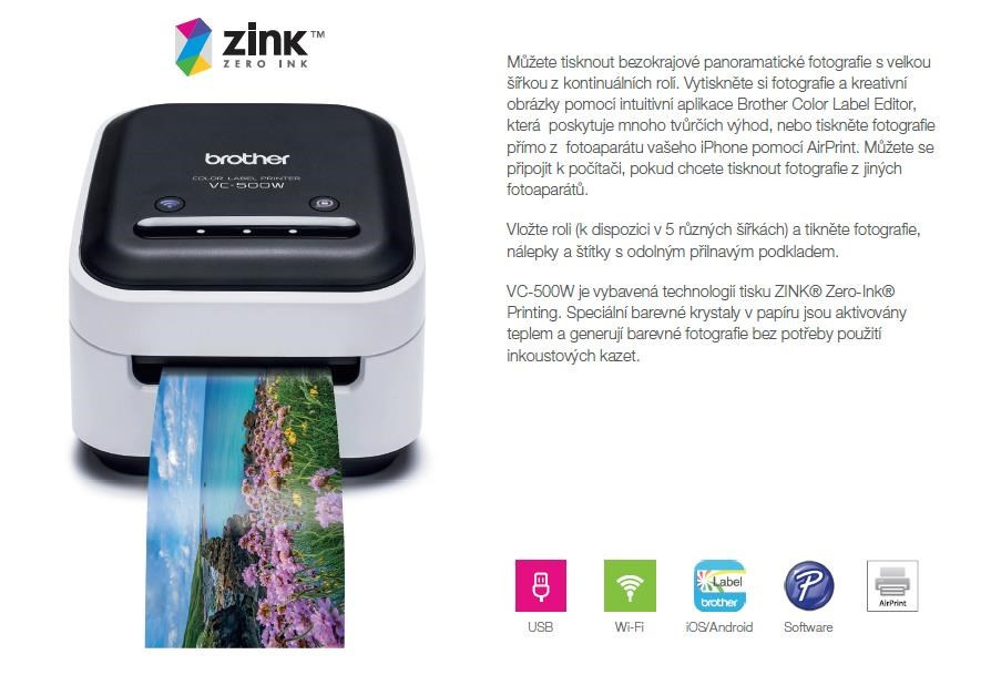 BROTHER tiskárna štítků FOTO - VC500W - WIFI, USB, COLOR bez potřeby inkoustu - Integrovaný odstřih