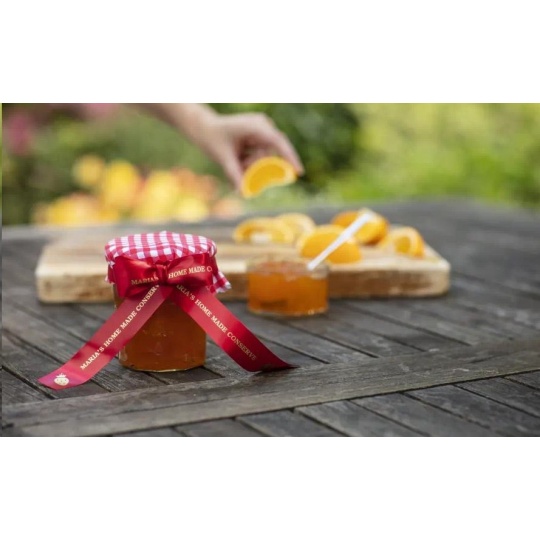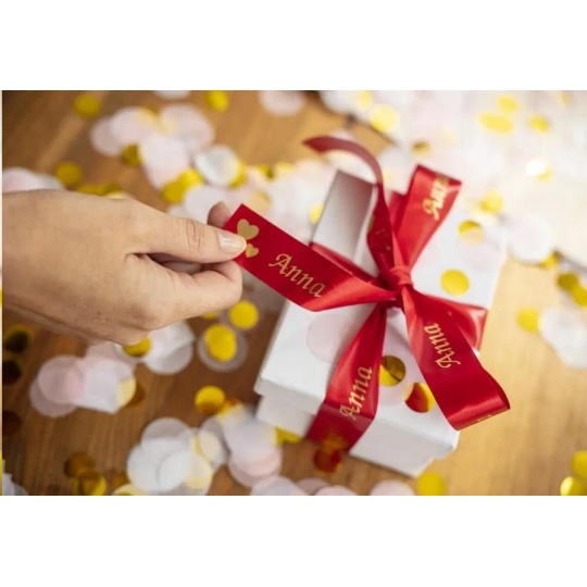 BROTHER TZE-RW54 - kazeta TZ šířky 24mm, TEXTILNÍ páska 4m- pro tvorbu dárků - NELEPÍCÍ -ČERVENÁ PÁSKA ZLATÝ POTISK gold