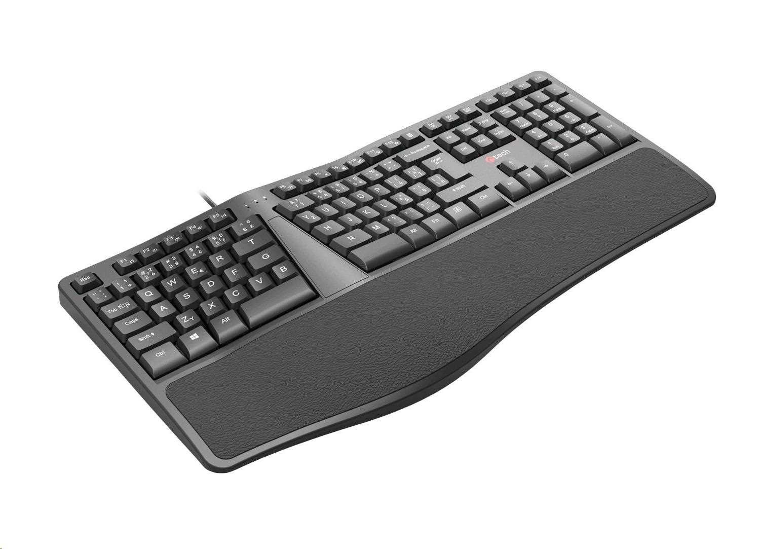 C-TECH Klávesnice KB-113E USB, ERGO, černá, CZ/SK