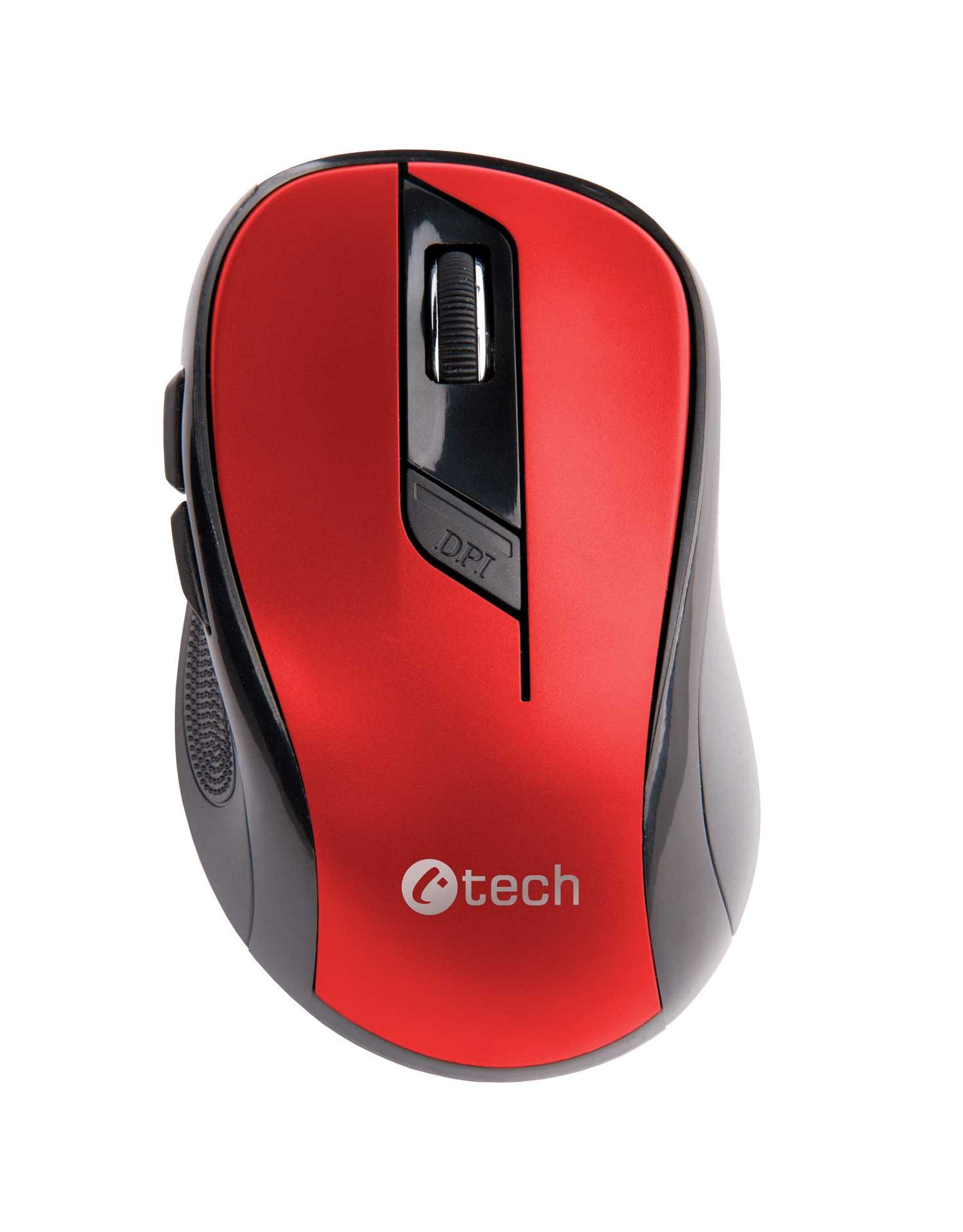 C-TECH myš WLM-02, černo-červená, bezdrátová, 1600DPI, 6 tlačítek, USB nano receiver
