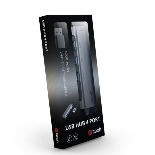 C-TECH UHB-U3-AL, USB Hub, 4x USB 3.2 Gen 1, hliníkové tělo