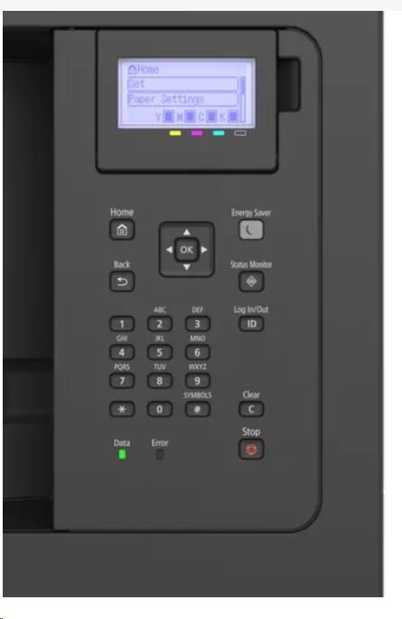| Ovládací panel | Displej LCD s 5 řádky, 5 indikátorů LED (Online, Ready, Message, Job a Energy saver), tlačítka, číselná klávesnice s 10 tlačítky |