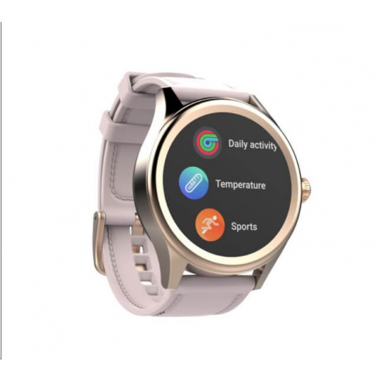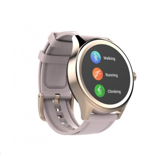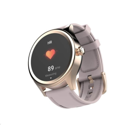 Smart hodinky Carneo Prime GTR v elegantním zlatém provedení, barevným dotykovým displejem lze aktivovat jednoduchým otočením ruky. Kromě běžných "smart" funkcí disponují i fitness sportovními funkcemi a to vše v elegantním business look provedení. Rosegold silikonový řemínek v designu koženého pásku s prošíváním umocňuje jejich eleganci.