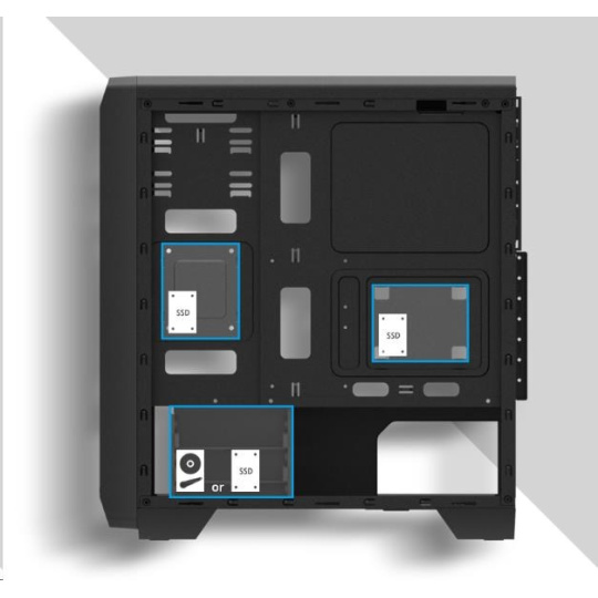 | Fan mount locations | Front: 120mm x 3 Top: 120mm x 2 Rear: 120mm x 1 Bottom: 120mm x 2  |