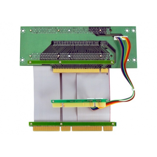 The Riser card has one PCI-E 16x slot and two 3,3V 64-bit PCI-X slots, PCI-X extension cable, PCI signal cable