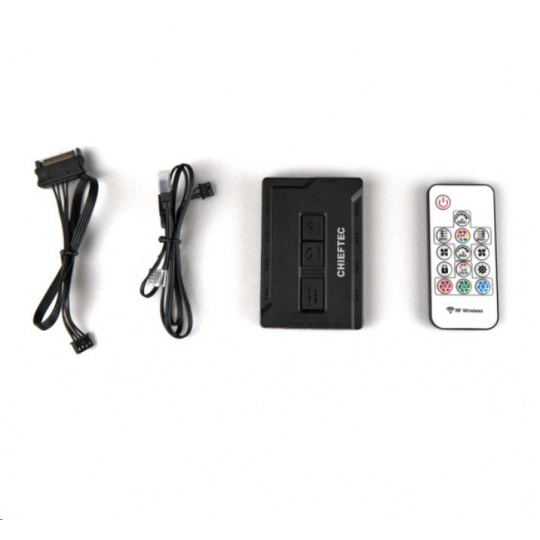 | Scope of delivery | Set of screws, instruction manual, thumb screws, remote control RGB control hub (DF-908) with 3PIN +5V M/B Sync and SATA power cable Front: 3x 120mm A-RGB rainbow fans pre-installed Rear: 1x 120mm A-RGB rainbow fan pre-installed |