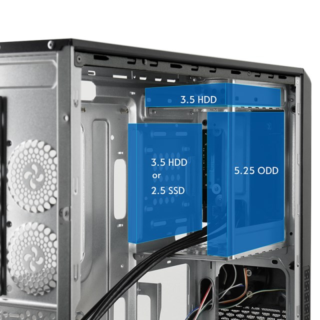 Drive bay internal 2 x 3,5" / 2x 2,5" or 1x 3,5" / 3x 2,5"