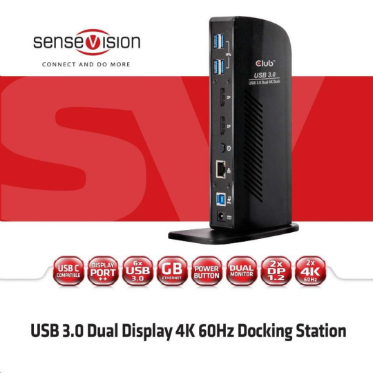 CSV-1460 - The SenseVision USB 3.1 Gen 1 Dual Display 4K 60Hz Docking Station is designed to satisfy all your connectivity demands. It provides no less than 6 USB 3.1 Gen 1 Ports, Headphone connection, Microphone connection, Gigabit Ethernet port and 2 x Displayport™ outputs.
