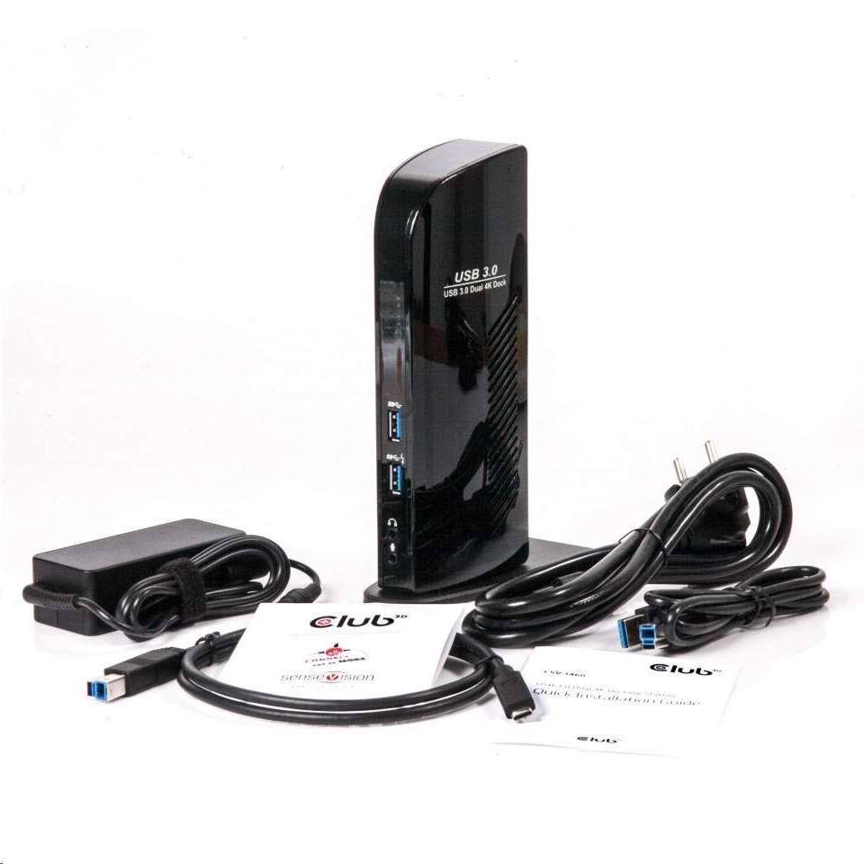 Club3D Dokovací stanice USB-A nebo USB-C, 10v1 2xDP, 6xUSB, 1xRJ45, 1x3.5mm, černá
