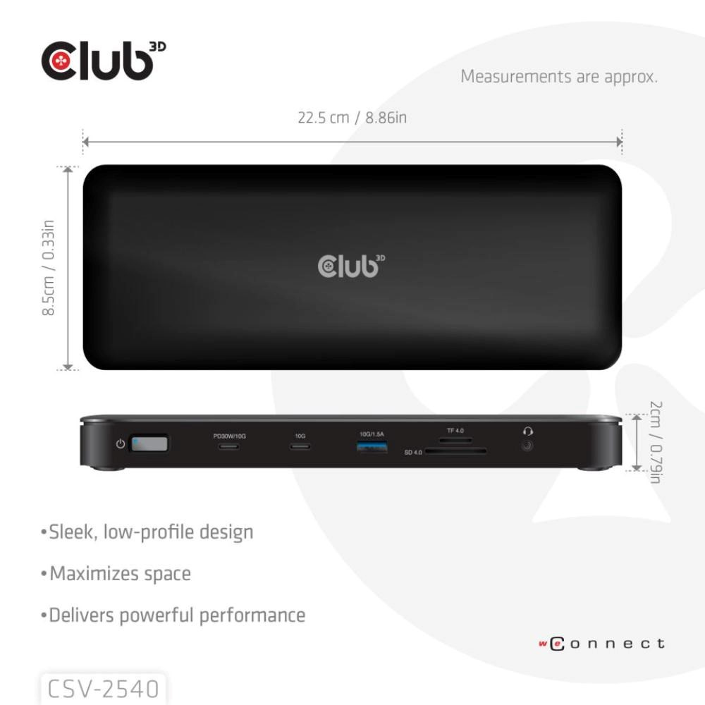 Club3D Dokovací stanice USB-C 14v1, 2xHDMI, 2xDP, 3xUSB-C, 1xUSB-C PD, 2xUSB, 1xRJ45, 1x3.5mm, microSD/SD, černá