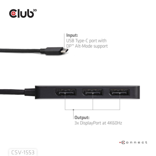 Club3D hub MST USB-C na 3xDisplayPort, Single: 8K30Hz, Triple: 4K60Hz