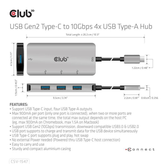 | In the box | CSV-1547 USB Gen2 Type-C to 10Gbps 4x USB Type-A Hub |