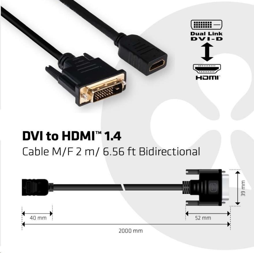 Club3D Kabel DVI-D na HDMI 1.4, (M/F), 2m