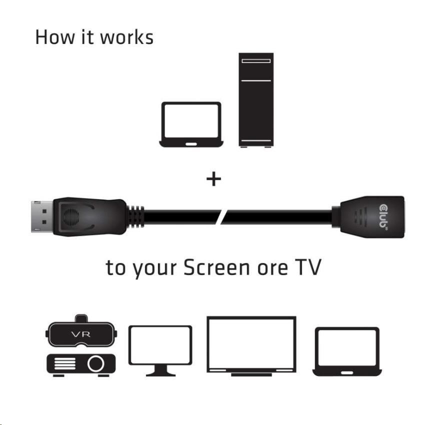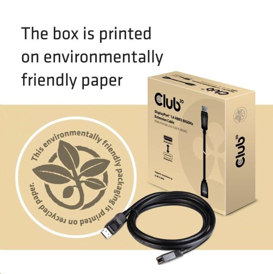 • Club 3D DisplayPort™ 1.4 HBR3 8K60Hz Extension Cable Male/Female 2m/ 6.56 ft 28AWG.