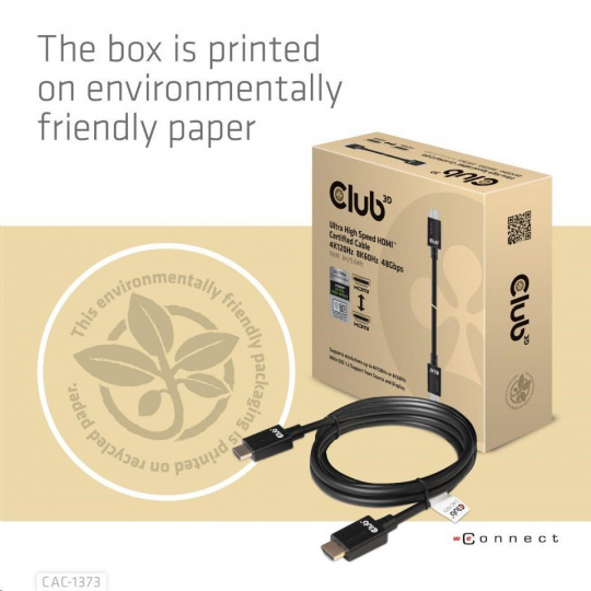 CAC-1373 -The Club 3D Ultra High Speed HDMI™ Cable is build to handle the highest quality video- and audio signals. HDMI™ has an increased Bandwidth of 48Gbps. The increase in maximum bandwidth compared to previous versions is achieved by increasing both the Bitrate of the data channels (from 6Gbps to 12Gbps) and the number of channels (from 3 to 4). This allows support for resolutions up to supports 10K at 120Hz!