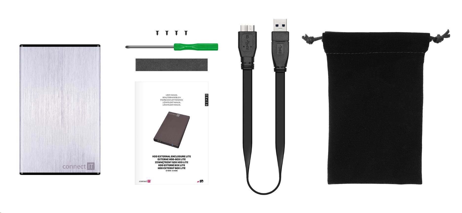 CONNECT IT externí box LITE pro HDD 2,5" SATA, USB 3.0 stříbrný