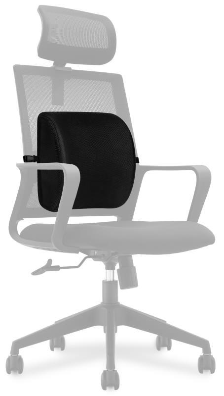 Bederní opěrka na židli s ergonomickým designem pro maximální pohodlí a podporu bederní části zad. Univerzální provedení pro použití na kancelářských a herních židlích, sedadlech v autě, sedaček, invalidních vozíků a jiné.
