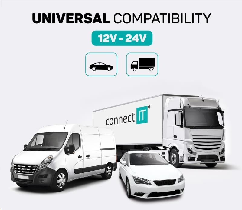 - Kompatibilní se všemi 12/24 V zásuvkami cigaretového zapalovače v osobních i nákladních automobilech