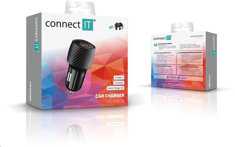 CONNECT IT InCarz QUICK CHARGE 3.0 nabíječka do auta, 1x USB-A, 3 A, carbon