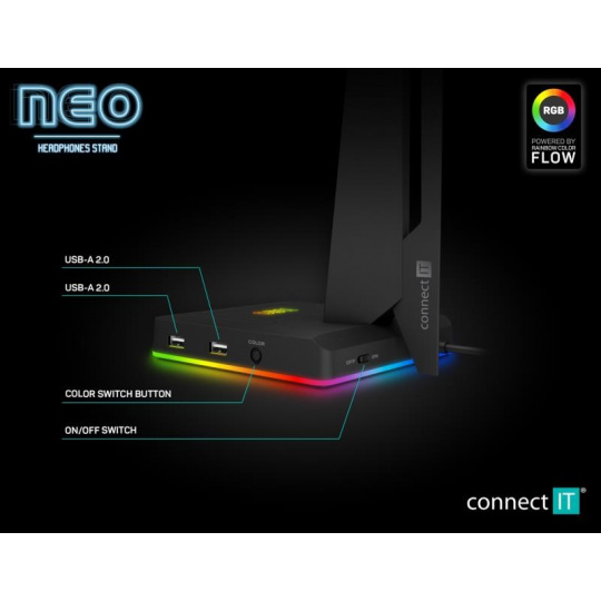 CONNECT IT NEO Stand-It RGB stojánek na sluchátka + USB hub, černá