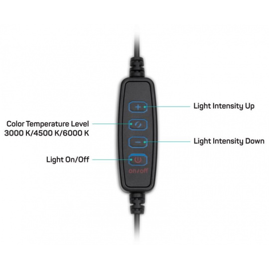 | Možnost nastavení barevné teploty světla | - 3000 K (teplá barva) - 4500 K (neutrální barevná teplota) - 6000 K (studená barva) |