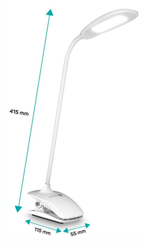 Díky flexibilnímu rameni nastavíte dokonalý úhel pro jakoukoliv práci. Lampička disponuje praktickým dotykovým spínačem, který umožňuje zapnout/vypnout lampu a nastavit 3 úrovně jasu světla. Pomocí klipu můžete lampičku umístit nejen na Váš pracovní stůl, ale například na poličku, noční stolek či rám postele.