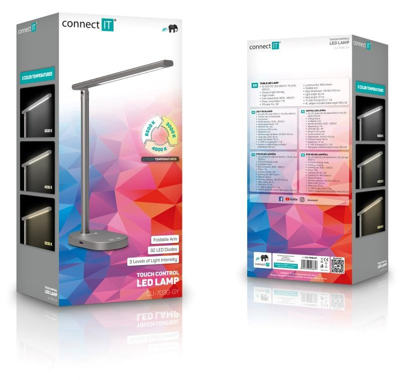 CONNECT IT Stolní LED lampa Shine, USB-A, šedá