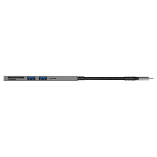 Prakticky tvarovaný USB-C hub pro připojení až 3 USB periferií (1 x USB-C a 2 x USB-A), 1x SD karty a 1x MicroSD karty. Umožní připojení např. myši, klávesnice, MP3 přehrávače, scanneru, tiskárny, digitálního fotoaparátu, externího pevného disku, flashdisku atd.