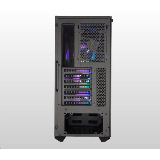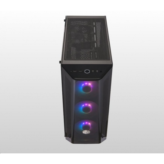 MasterBox MB520 ARGB je optimální herní počítačová skříň formátu ATX, ve které se můžete pochlubit osvětlením komponent a zároveň udržet systémy chladné. Přední panel DarkMirror je o odstín tmavší, aby dodal předinstalovaným ventilátorům ARGB ostřejší kontrast. Na každé straně předního panelu se shora dolů rozprostírá ventilační síťka, která zajišťuje značné proudění vzduchu uvnitř skříně.