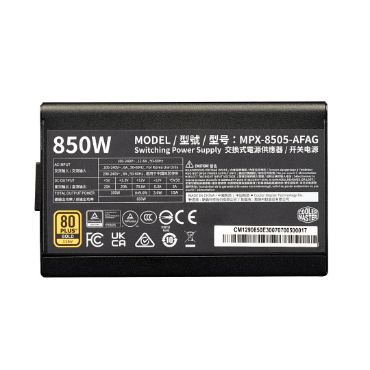 Cooler Master zdroj ELITE Gold 850W FM, 120mm, Plně modulární, 80 Plus Gold, ATX 3.1