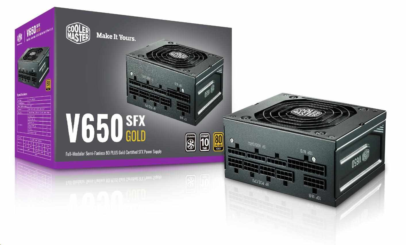 Cooler Master zdroj V650 SFX Gold, 650W, Plně modulární, 92mm, 80+ Gold