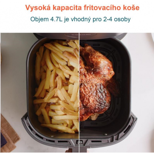 - Objem fritovacího koše 4,7l při zachování kompaktních rozměrů