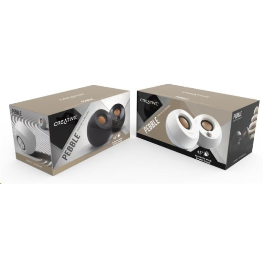 Kulovitý reproduktor Creative Pebble, inspirovaný zenovou japonskou skalkou, je moderní a elegantní 2.0 reproduktorový systém, který představuje ideální doplněk každé domácnosti a kanceláře. Zvukové pole s náklonem 45° zajišťuje vylepšené šíření zvuku. Napájení zajišťuje jediný USB kabel pro bezstarostnou zábavu.