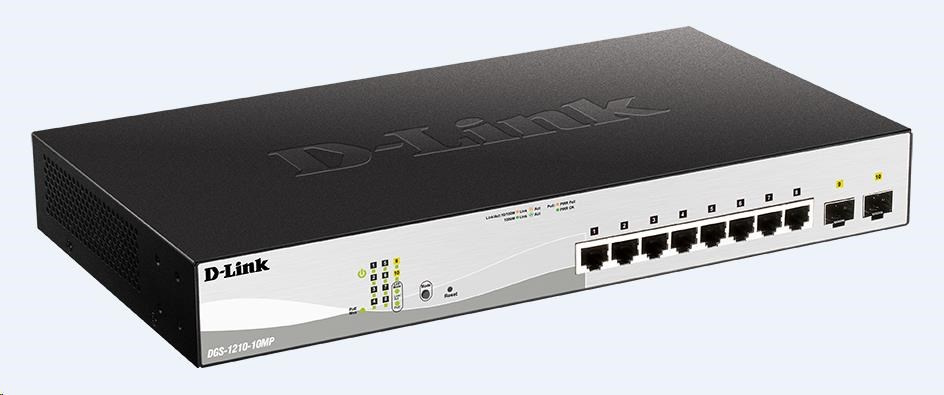 D-Link DGS-1210-10MP 10-port Gigabit Smart+ PoE Switch, 8x GbE PoE+, 2x SFP, PoE 130W, fanless