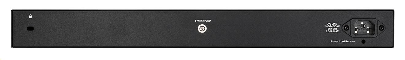 26-Port Gigabit Smart Switch with 2 SFP ports - 24 x 10/100/1000Mbps Auto-Negotiating Ports - 2 x Combo 1000BaseT/Mini-GBIC SFP ports - Advance power saving features - Fanless design - Half-/Full-Duplex, auto-negotiation, Auto MDI/MDIX - IEEE 802.3x Flow Control - 802.3ad Link Aggregation - Asymmetric VLAN, Auto Voice VLAN - 802.1p priority queues - MAC/IP filtering - MAC/IP-based ACL - 802.1X port-base Access Control, Port Security - D-Link Safequare Engine - Smart Console Utility, web based management, compact CLI - D-View 6.0 support - 19" Rackmount Installation.